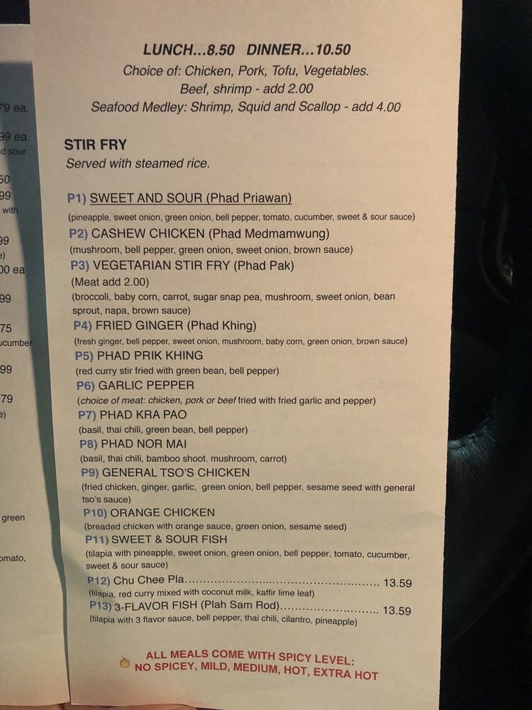 (tilapia in flavor sauce, Thai chili, bell pepper, pineapple, cilantro)